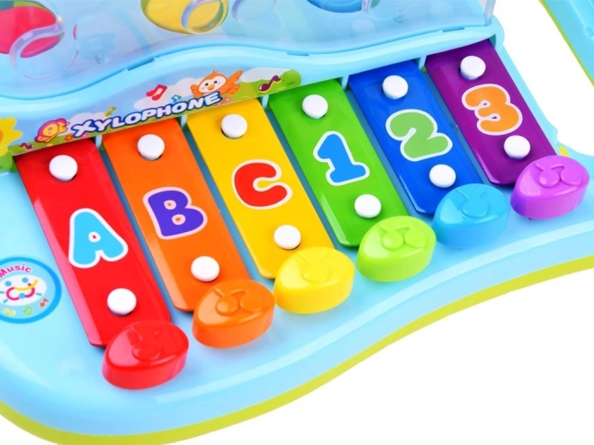 Xilofonul include clape marcate cu litere și cifre, care sprijină învățarea timpurie a copiilor.