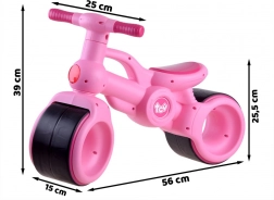 Bicicleta fără pedale TCV, roz, este prima „motocicletă” ideală pentru cei mai mici. Cadrul stabil, formele rotunjite și roțile late oferă o deplasare sigură, iar construcția ușoară susține independența copilului. Mersul pe bicicleta fără pedale dezvoltă în mod natural motricitatea, încrederea și simțul echilibrului, facilitând ulterior trecerea la o bicicletă clasică fără roți ajutătoare.
