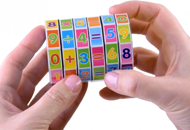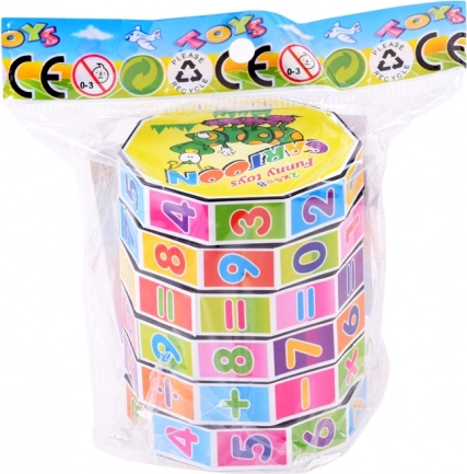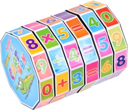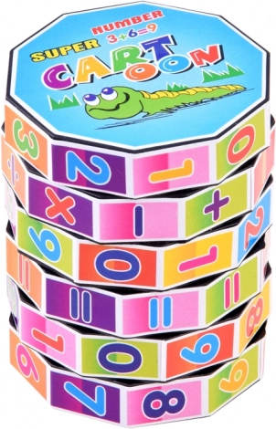 Jucărie educativă colorată în formă de cilindru, cu inele rotative, care îi ajută pe copii să exerseze adunarea, scăderea, înmulțirea și împărțirea. Un instrument compact și distractiv care dezvoltă gândirea logică, motricitatea fină și susține învățarea prin joc.