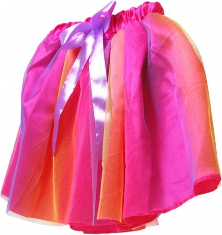 Poți alege dintre două combinații atrăgătoare: efect ombré roz cu fundă mov sau galben cu căptușeală albă și buline galbene, completată de fundă roz. Perfectă pentru poze, petreceri și joaca zilnică de costumație – fusta stimulează imaginația și exprimarea de sine a fiecărei mici cochete.