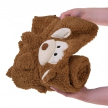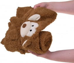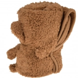 O pătură drăgălașă pentru copii și o jucărie de pluș într‑una singură! Acest pisoiaș pufos în stil maimuțică, în nuanța la modă moka, oferă căldură plăcută, finețe pentru pielea sensibilă și transformare ușoară într‑o jucărie în doar câteva secunde. Ideală pentru pătuț, cărucior și călătorii.