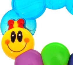 Ineluș de dentiție colorat în formă de omidă pentru bebeluși oferă ușurare în timpul erupției dinților și sprijină dezvoltarea senzorială. Forma ergonomică se ține ușor în mâinile mici, suprafața texturată masează delicat gingiile, iar după răcirea în frigider oferă un efect calmant.