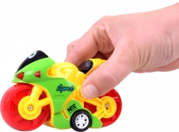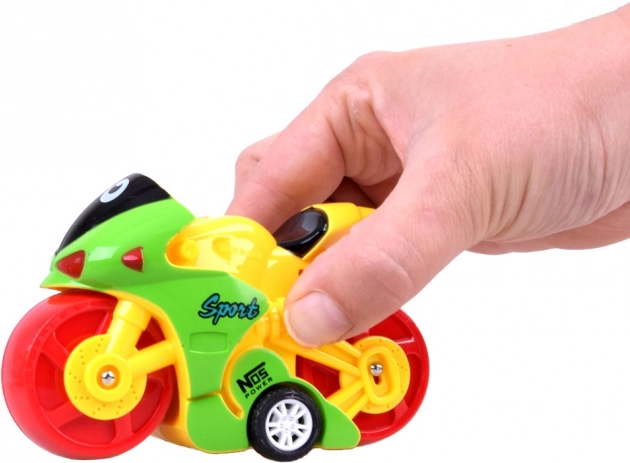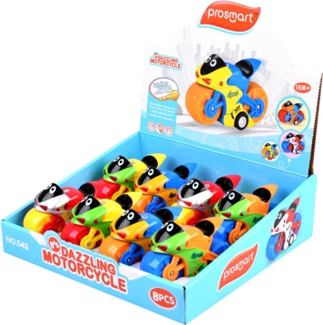 Culorile puternice și construcția sigură ale motocicletei asigură că jucăria este nu doar atractivă vizual, ci și sigură pentru copii. Dimensiunile produsului sunt 11 cm x 7 cm x 4 cm. Fiecare motocicletă este trimisă aleator într-una dintre variantele de culori disponibile.
