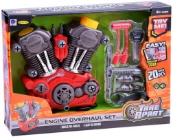Este inclusă o bogată trusă de unelte, cu ajutorul căreia motorul poate fi demontat și reasamblat în mod repetat. Totul este fabricat din plastic rezistent, pentru o joacă de durată și o manipulare ușoară chiar și pentru mâini mici. O idee grozavă de cadou, care sprijină motricitatea fină, răbdarea și gândirea creativă.