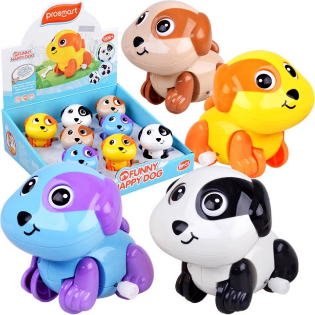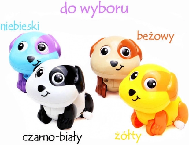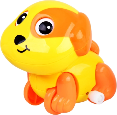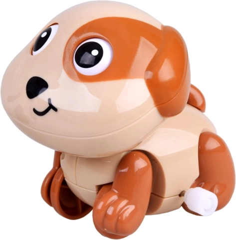 Un căţel drăgălaș cu mecanism cu arc îi va bucura pe toți bebelușii și pe micuții care abia pășesc. Doar întoarceți arcul și cățelul pornește singur, iar în mers își mișcă ochii și coada. Susține mișcarea, târârea și urmărirea jucăriei, este ușor și se potrivește perfect în mânuțele mici.