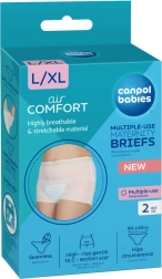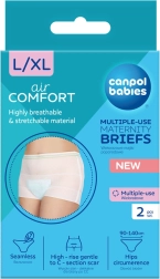 Chiloții postnatali reutilizabili CANPOL BABIES din plasă fină oferă respirabilitate, confort și fixare sigură a absorbantului. Datorită taliei înalte, sunt blânzi cu cicatricea după cezariană, iar croiul lor elastic, fără cusături se adaptează perfect siluetei. Pachetul conține 2 bucăți mărimea L/XL (șolduri 90–140 cm).