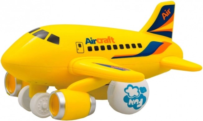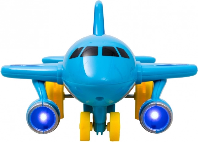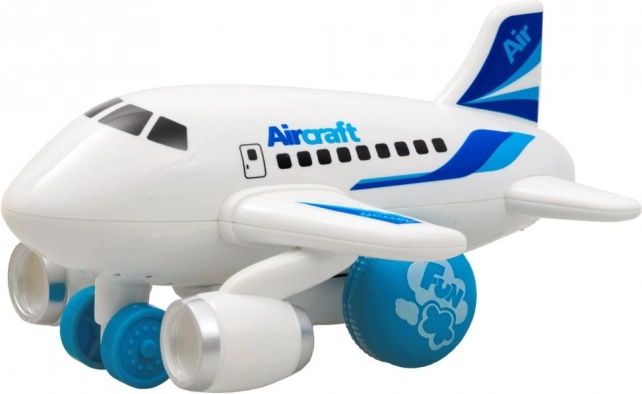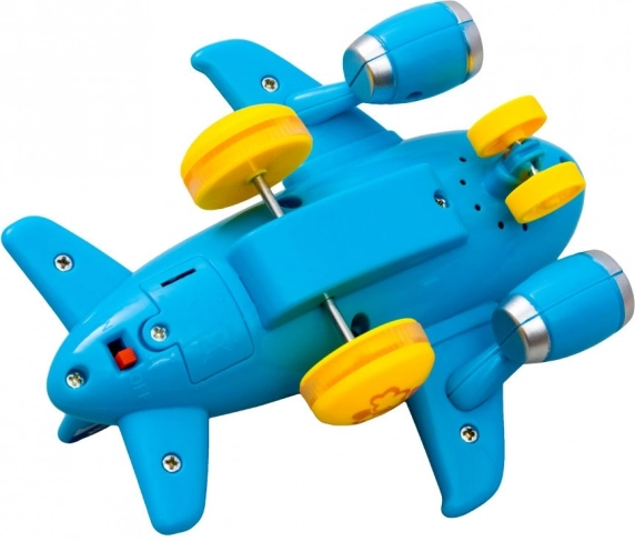 Avionul luminează în timpul mersului și redă sunetul de decolare, precum și melodii vesele care captează imediat atenția copiilor și le stimulează percepția senzorială.