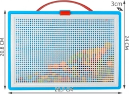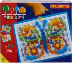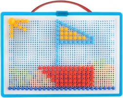 Acest mozaic creativ cu ciupercuțe aduce copiilor o lume colorată a creației. Din pinii colorați prind ușor viață fluturi, flori sau modele originale proprii. Setul în valiza practică permite transportul și depozitarea ușoară a tuturor pieselor, astfel încât nimic nu se pierde și distracția poate începe oricând și oriunde.