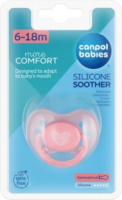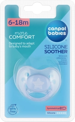 Suzeta PASTELS din silicon este fabricată din silicon transparent, complet fără gust și miros. Suzeta nu conține BPA. În ambalaj: 1 bucată. Avantajele suzetelor Canpol babies: se aerisesc bine; vă puteți convinge ușor apăsând tetina (nu subestimați această proprietate a suzetei; aerisirea necorespunzătoare duce la deformarea palatului și mușcăturii copilului). Orificiile de ventilație din scutul suzetei permit circulația liberă a aerului, evacuarea salivei și previn iritarea pielii din jurul gurii. Inelul de siguranță al suzetei este fix, facilitează prinderea confortabilă de către copil și atașarea unui clips sau lanț de către părinți. Suzetele sunt disponibile în culori pastel atrăgătoare și designuri ingenioase. Completați cu o husă pentru suzetă în același design. Instrucțiuni de utilizare: Înainte de prima utilizare, din motive de igienă, sterilizați suzeta în apă clocotită aproximativ 5 minute. După răcire, eliminați apa rămasă din suzetă. Înainte de fiecare utilizare, spălați bine suzeta în apă caldă. Nu folosiți produse antibacteriene sau detergenți chimici. Utilizarea excesivă a detergenților poate deteriora piesele din plastic. Nu scufundați niciodată suzeta în substanțe dulci sau medicamente – expuneți copilul riscului de apariție a cariilor smalțului. Folosiți suzeta maximum 1–2 luni, apoi, din motive de igienă și siguranță, înlocuiți-o cu una nouă. Dacă suzeta intră în gura copilului, NU VĂ PANICAȚI – suzeta este concepută astfel încât copilul să nu o poată înghiți și o puteți scoate în siguranță. Scoateți suzeta cât mai atent posibil. Păstrați suzeta într-o husă curată, uscată și închisă. Recomandăm să nu folosiți suzete la copiii mai mari de 3 ani. Important! Pentru siguranța și sănătatea copilului dumneavoastră! Verificați suzeta înainte de fiecare utilizare. Testați tetina prin întindere atentă în toate direcțiile. La primele semne de deteriorare, aruncați suzeta și nu o mai folosiți. Folosiți numai clipsuri și lanțuri pentru suzetă care corespund cerințelor standardului EN12586. Nu atașați niciodată suzeta de șnururi, șireturi sau panglici ale hainelor. Copilul se poate sufoca. Nu lăsați suzeta în lumina directă a soarelui, lângă surse de căldură sau în soluții dezinfectante mai mult decât este recomandat – poate slăbi tetina. Păstrați capacul detașat departe de copil – preveniți riscul de sufocare. Suzeta îndeplinește cerințele: Directiva Parlamentului European și a Consiliului 2001/95/CE privind siguranța generală a produselor. EN 1400 - 1 Produse pentru îngrijirea copilului – Suzete pentru sugari și copii mici – Partea 1: Cerințe generale de siguranță și informații despre produs. EN 1400 – 2 Produse pentru îngrijirea copilului – Suzete pentru sugari și copii mici – Partea 2: Cerințe și teste mecanice. EN 1400 - 3 Produse pentru îngrijirea copilului – Suzete pentru sugari și copii mici – Partea 3: Cerințe și teste chimice.