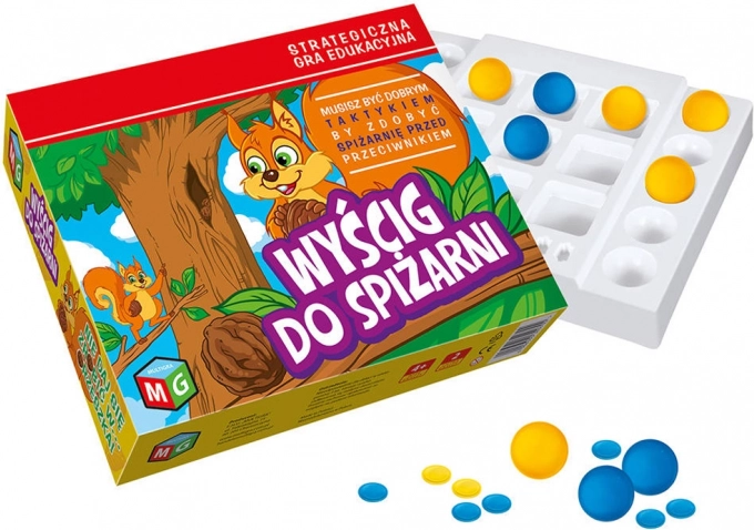 Ce-i cu toată agitația? Veverițele încearcă să-și facă provizii de alune ca să aibă ce mânca în lunile de iarnă. Fiecare veveriță are nevoie de cât mai multe provizii, dar depozitarea lor nu este ușoară. Pentru a câștiga cămara, trebuie să așezi trei alune una lângă alta înainte să o facă adversarul.
