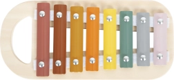 Clapele metalice diferențiate cromatic stimulează simțul ritmului și al tonurilor. Xilofonul poate fi scos cu ușurință și folosit separat.