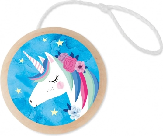 Acest jojo clasic este fabricat din lemn și conține ilustrații frumoase cu unicorni pe fiecare parte. Este ideal pentru mâinile copiilor și aduce bucurie și fascinație. Jojo ajută copiii să își dezvolte îndemânarea și coordonarea mișcărilor, esențiale pentru dezvoltarea lor motorie.