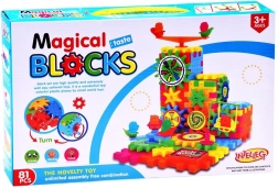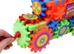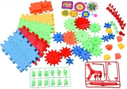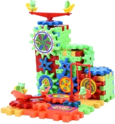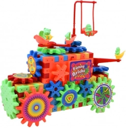 Setul include o roată dințată alimentată cu baterii AA pe care copiii o pot folosi pentru a aduce construcțiile la viață.