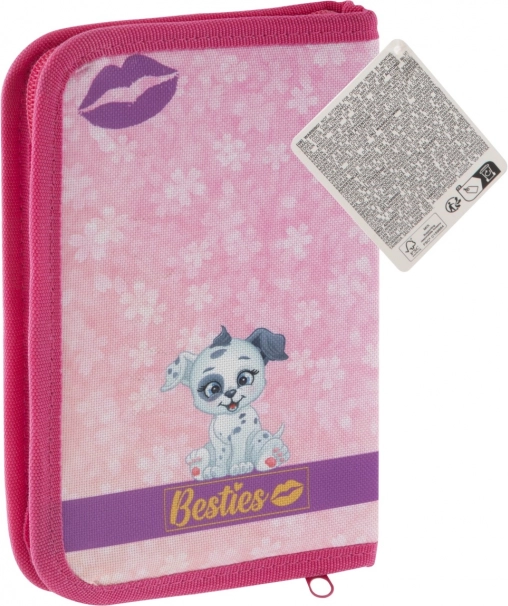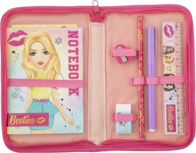 Mergeți la școală cu acest penar școlar stilat Besties, care conține tot ce aveți nevoie: riglă, ascuțitoare, pix, creion, radieră și carnet.