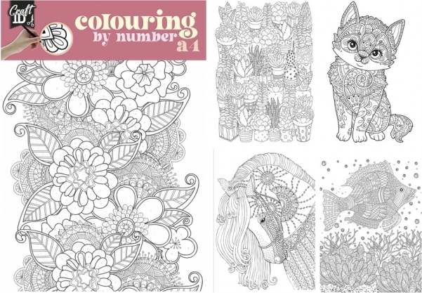 - Cinci imagini detaliat proiectate pentru pictat după numere.