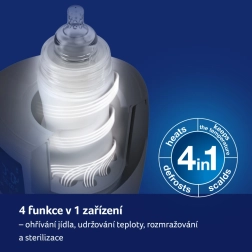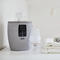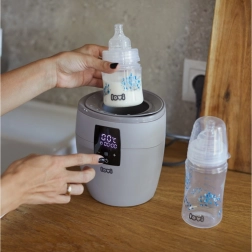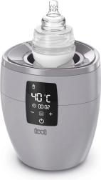 Încălzitor de biberoane LOVI 4 în 1. Încălzire rapidă și uniformă. Control intuitiv pe un ecran clar. 4 funcții în trei moduri: modul BOTTLE – încălzirea lichidelor în biberon, decongelarea meselor depozitate în punguță. Menține temperatura dorită până la 10 ore. modul HOT – încălzire rapidă a mesei + funcție de sterilizare a biberoanelor și accesoriilor. modul DINNER – menține temperatura dorită până la 3 ore. Sigur – oprire automată în absența apei în modul HOT. În pachet, un pahar gradat pentru apă. Încălzitorul Lovi reprezintă o metodă ideală și sigură de încălzire a meselor. Conține termostat care menține temperatura setată foarte mult timp. Protejează masa împotriva supraîncălzirii și pierderii vitaminelor și mineralelor valoroase. Încălzitorul super rapid LOVI setează automat timpul de încălzire al mesei indiferent dacă aceasta este refrigerată, congelată sau la temperatura camerei. Încălzitorul Lovi este destinat încălzirii meselor în următoarele tipuri de biberoane sau borcănașe: • în biberoanele Lovi și în majoritatea celorlalte biberoane cu gât larg • în biberoane clasice, • în borcănașe cu mâncare gata pentru copii. Lățimea maximă a biberonului potrivit pentru acest încălzitor este de 6,5 cm. 4 funcții în 1 – încălzește, menține temperatura, decongelează și sterilizează cu abur. Rapid – încălzește masa în doar 2 minute, ceea ce îl plasează înaintea majorității încălzitoarelor disponibile pe piață. *80 ml lapte/apă cu temperatura inițială de 21°C. Universal – compatibil cu majoritatea biberoanelor pentru sugari disponibile pe piață. Sigur – oprire automată în absența apei în modul HOT. Încălzitorul corespunde cerințelor: Directiva Parlamentului European și a Consiliului 2006/95/CE privind armonizarea legislațiilor statelor membre referitoare la echipamentele electrice destinate utilizării în anumite limite de tensiune. Directiva Parlamentului European și a Consiliului 2011/65/UE privind restricționarea utilizării anumitor substanțe periculoase în echipamentele electrice și electronice. Directiva Parlamentului European și a Consiliului 2004/108/CE privind apropierea legislațiilor statelor membre referitoare la compatibilitatea electromagnetică. Avertisment: Instrucțiunile exacte privind întreținerea adecvată și corectă a produsului se găsesc în manualul utilizatorului.