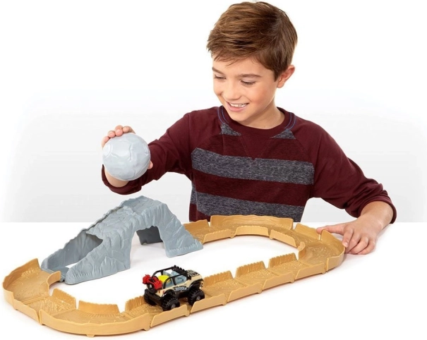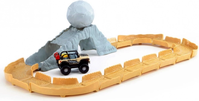 - Conținutul pachetului: pistă de asamblat, mașinuță de teren, rampă, bolovan.