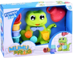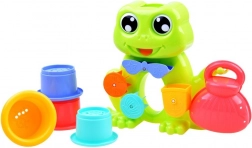 Drăgălașa broască pentru cadă aduce copiilor multă distracție la băiță. Turnați apă în căpușorul broaștei și urmăriți cascada de tobe rotative, care creează efecte vesele de apă. Pachetul include 4 păhărele colorate stivuibile pentru turnat, sortat și construit, care dezvoltă motricitatea fină, coordonarea și creativitatea.