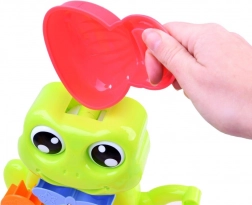 Broasca veselă, cu ochi mari și butonașe, îi atrage pe cei mici și îi motivează să descopere singuri efectele de apă.