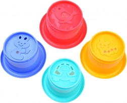 Patru păhărele de dimensiuni diferite susțin sortarea, stivuirea și dezvoltarea motricității fine, precum și învățarea culorilor.