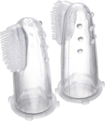 Periuța din silicon este destinată spălării primilor dinți ai copilului și masajului gingiilor. O recomandăm și pentru copiii care încă nu au dinți. Construcția periuței permite curățarea și masajul zonelor greu accesibile. Proeminențele speciale masează temeinic gingiile copilului. Îl învață pe copil o igienă orală corectă. Le permite părinților o curățare sigură, fără teama de a deteriora gingiile sensibile ale copilului, lucru care se poate întâmpla la folosirea periuțelor de dinți clasice și care poate descuraja copilul de la curățarea dinților. Puneți periuța pe degetul arătător (vezi imaginea) și curățați și masați ușor gingiile copilului.Instrucțiuni de utilizare: Mențineți produsul curat. Înainte de fiecare utilizare, sterilizați în apă clocotită timp de 5 minute. După utilizare, spălați bine periuța și clătiți-o.Important! Pentru siguranța și sănătatea copilului dumneavoastră! Verificați produsul înainte de fiecare utilizare. La primele semne de deteriorare sau uzură, aruncați produsul imediat și nu îl mai folosiți. Produsul nu este o jucărie, păstrați-l în afara razei de acțiune a copilului. Periuța corespunde cerințelor: Directivei Parlamentului European și a Consiliului 2001/95/CE privind siguranța generală a produselor.
