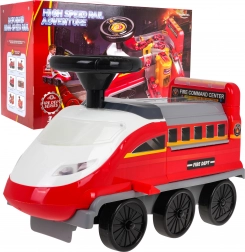 Vehiculul interactiv tip locomotivă 2în1 combină deplasarea cu un set de joacă bogat pe tema pompierilor. Datorită construcției robuste din plastic netoxic, roților frontale pivotante și farurilor frontale luminoase, este ideal pentru joacă atât în interior, cât și în exterior. Distracția este asigurată de butonul luminos de pe volan și de panoul muzical din spate cu melodii, povești și sunete de animale (în limba engleză).