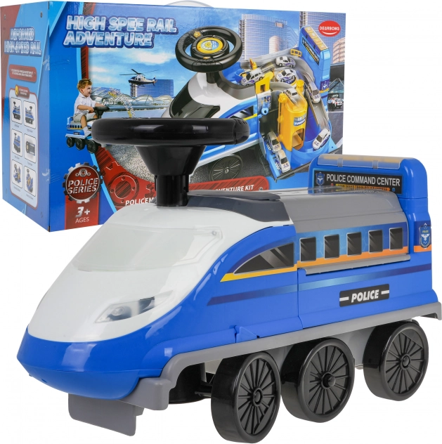 Trenulețul interactiv de călărit cu parcare de poliție este ideal pentru copiii de la 3 ani. Acest produs inovator de călărit este realizat din plastic de înaltă calitate și netoxic, asigurând durabilitate și siguranță pentru copii. Trenulețul este echipat cu șase roți, dintre care două frontale sunt pivotante, iar sub scaun se află o parcare de poliție pliabilă cu numeroase elemente mobile, inclusiv tobogane, lift și bariere, pe care le puteți ajusta după preferințe.