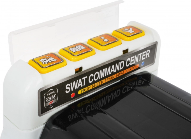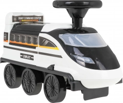 Vehiculul de împins este inspirat de o tematică de poliție, incluzând un design unic în stil SWAT și funcții interactive care stimulează imaginația.