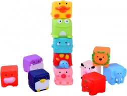 Copiii se pot juca cu animalele colorate și își pot îmbunătăți motricitatea așezând animalele în formă de piramidă.