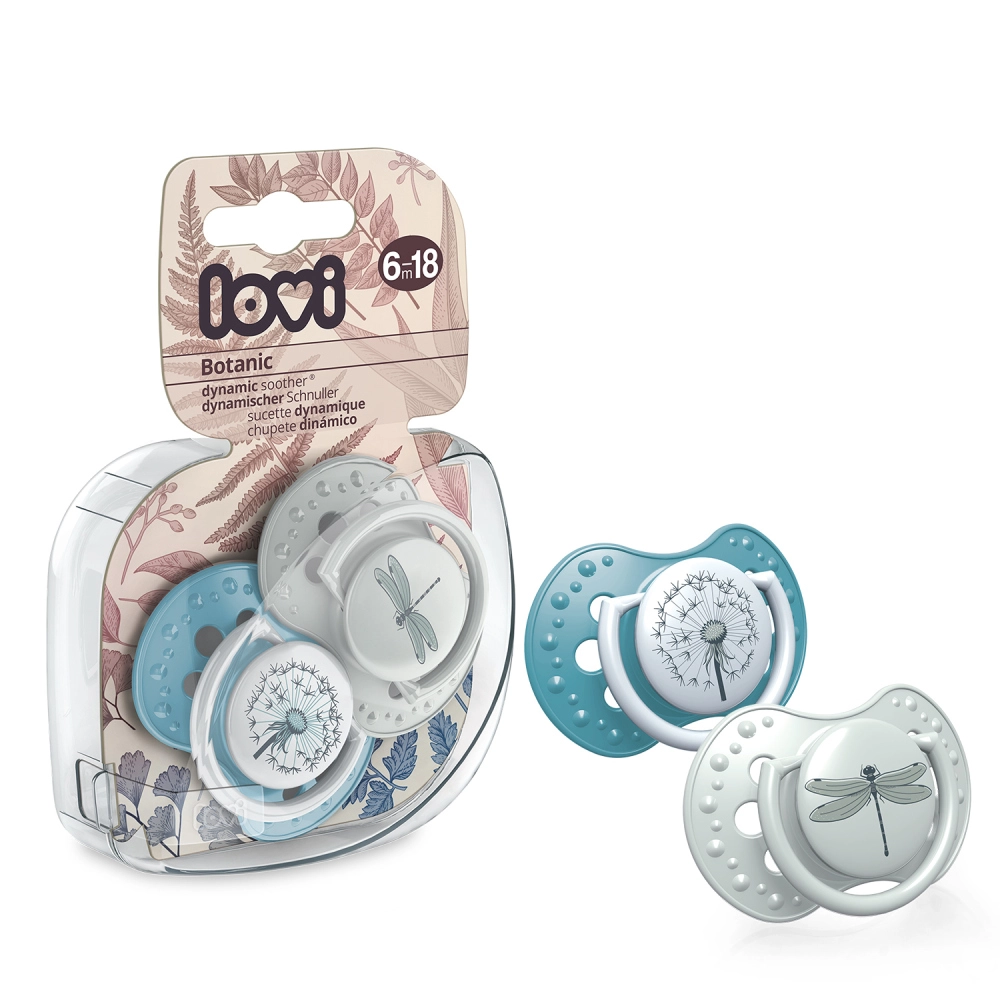 LOVI Suzeta din silicon dinamică BOTANIC 6-18 luni 2 buc băiat