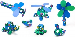 CLIXO Crew în culorile albastru și verde aduce copiilor o experiență modernă de construcție magnetică. Datorită pieselor flexibile și magneților puternici, prind viață modele stabile 2D și 3D, ușor de asamblat, dezasamblat și recombinat. Setul ușor și compact este ideal acasă și în călătorii – inspirația pentru construcții se găsește chiar pe ambalaj.