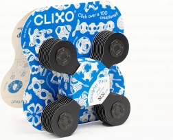 CLIXO Designer Black & Grey este un set modern de construcție magnetică, care din câteva piese flexibile creează o multitudine de creații 2D și 3D – de la pod, brățară și morișcă până la bol sau o bilă care se rostogolește. Datorită dimensiunilor compacte și greutății de doar 70 g, este un companion excelent pentru călătorii și școală. Hârtia sintetică reciclată este durabilă, fără BPA și ftalați și, datorită rezistenței la apă, permite joaca și în apă.