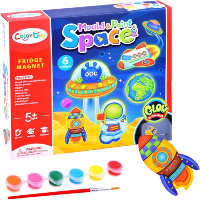Descoperă setul creativ distractiv pentru copii, cu care pot crea și picta cu ușurință propriii magneți spațiali pentru frigider. Setul conține tot ce ai nevoie – ghips, forme, pensulă, 6 culori, bol și bețișor de amestecat și bandă magnetică. Dezvoltă motricitatea fină, creativitatea și învățarea prin joc, un cadou ideal pentru micii creatori.