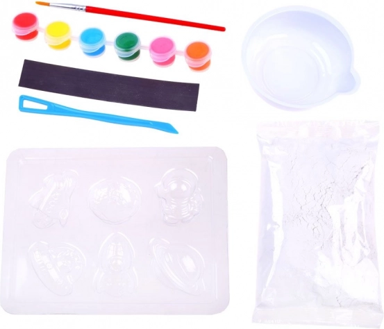Setul conține ghips, bol, bețișor de amestecat, 6 culori, pensulă, bandă magnetică și instrucțiuni – trebuie doar să adaugi apă și să începi să creezi.
