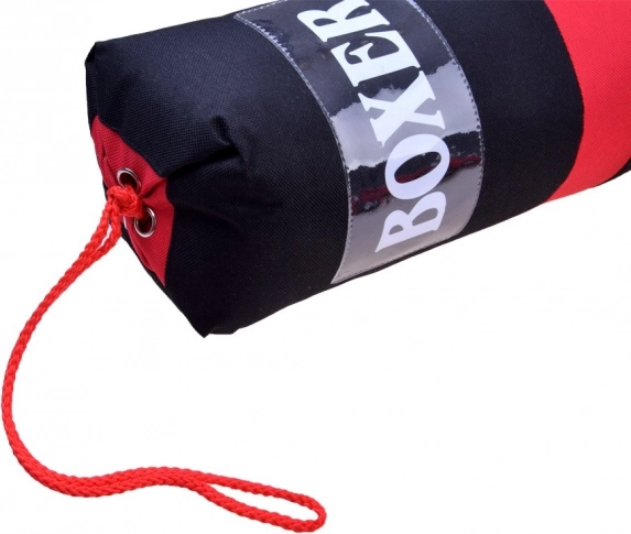 Sac cusut solid, cu inele metalice și șnururi pentru agățare ușoară. Proiectat pentru antrenamente regulate de lovituri.