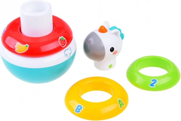 Jucărie stivuibilă cu unicorn oferă mai multe etape de joc care stimulează simțurile copiilor. Este concepută să crească împreună cu copiii și să le dezvolte abilitățile motorii și gândirea logică.