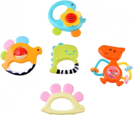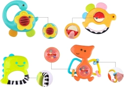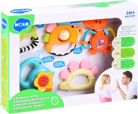 Descoperiți setul de jucării zornăitoare și jucării pentru dentiție, care este proiectat special pentru cei mai mici copii, care încep să descopere lumea. Acest set include cinci jucării zornăitoare în formă de dinozauri, fiecare din plastic viu colorat și sigur pentru copii.