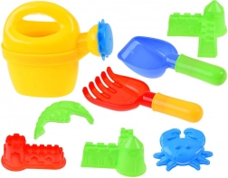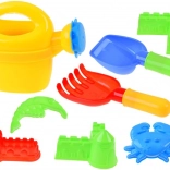 Setul include o stropitoare, o greblă, o lopățică și diverse forme. Această colecție variată oferă posibilități largi de creație și construcție în nisipar.