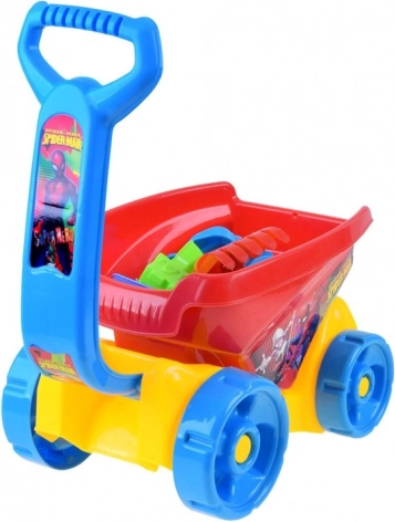 Setul nostru pentru nisip pentru copii cu cărucior este alegerea ideală pentru toți micii exploratori care vor să aibă jucăriile mereu la îndemână. Căruciorul cu mâner permite transportul facil al tuturor accesoriilor necesare, de la jucării la comori descoperite. Datorită tematicii Spider-Man, copilului dumneavoastră îi va plăcea cu siguranță.
