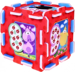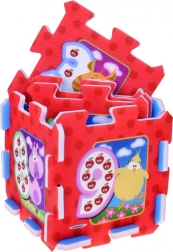 Piesele se îmbină ca un puzzle și pot forma o suprafață plană de joacă, dar și forme 3D (cuburi sau căsuțe), care sporesc distracția și dezvoltă reprezentarea spațială. Covorașul se întreține ușor – este suficient să fie șters cu o cârpă umedă. Suprafața antiderapantă contribuie la o stabilitate sporită în timpul jocului.