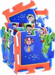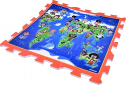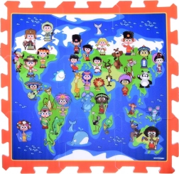 Covorașul din spumă, format din piese interconectabile, oferă o suprafață confortabilă și amortizantă pentru joacă, exerciții și relaxare. Imaginile cu copii și animale din diverse colțuri ale lumii motivează explorarea și învățarea prin joc. Piesele se pot uni cu ușurință într-un covoraș plat sau în forme 3D, precum un cub sau o căsuță.