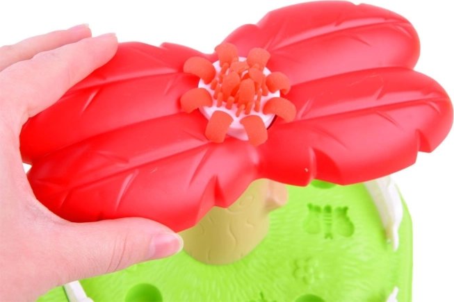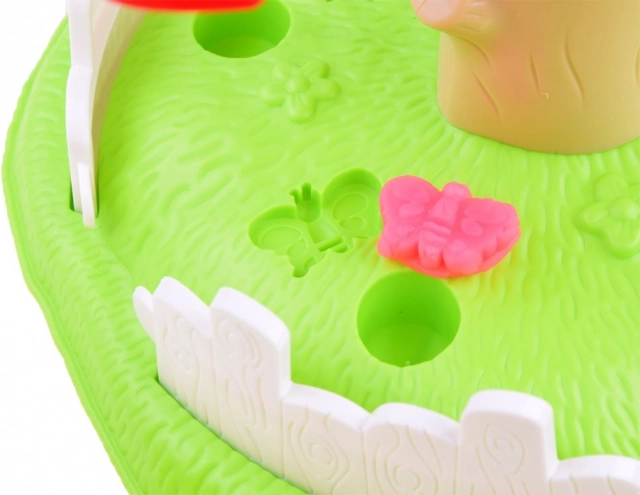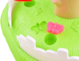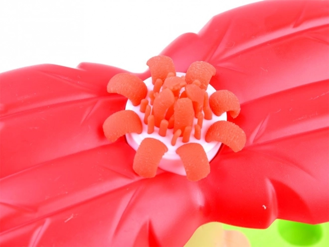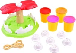 Setul permite copiilor să creeze diverse forme și flori colorate folosind plastilina în patru culori.
