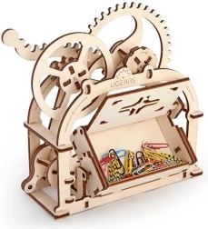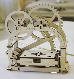 Cutia mecanică UGEARS îmbină materialul tradițional cu mișcarea ingenioasă. Datorită sistemului inteligent de angrenaje, este suficient să apeși maneta laterală, iar capacul se deschide cu un click plăcut. În pachet găsești două variante de panou frontal – cu decupaj și fără – în funcție de utilizarea dorită.