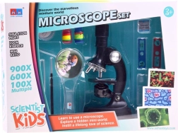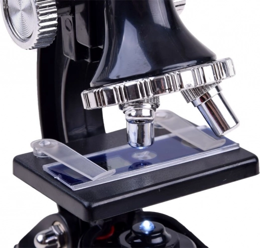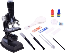 Acest set complex pentru micii oameni de știință le permite copiilor să vadă ceea ce este invizibil cu ochiul liber. Datorită celor trei niveluri de mărire 100×/600×/900×, pot examina cu ușurință preparate gata făcute și propriile mostre. Combinația robustă de plastic și metal ajută la obținerea unei imagini stabile și a unei focalizări precise.