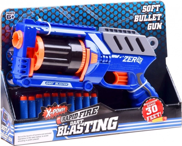 Tamburul rotativ permite încărcarea simplă și rapidă a gloanțelor din spumă, pregătite pentru acțiune în orice moment.