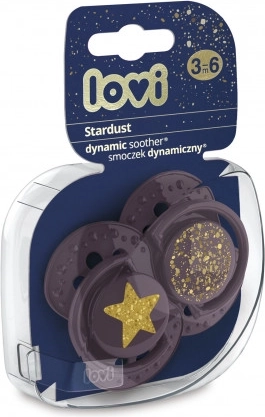 Stardust este aici! Colecția unică, de design inconfundabil, premium de la LOVI. Designul unic al colecției Stardust – decor cu sclipici auriu care amintește de cerul înstelat. Colecția se mândrește cu suzeta dinamică LOVI, mărimea 3-6 luni, creată în colaborare cu logopezi neurologici, cu scopul de a asigura dezvoltarea naturală și sănătoasă a bolții palatine, a dinților și a gingiilor copilului. Tetina suzetei se adaptează dinamic suptului copilului, nu perturbă reflexul de supt. Nu conține BPA. În pachet 2 bucăți. TOȚI SUNTEM FĂCUȚI DIN STELE Suzeta dinamică LOVI a fost creată în colaborare cu logopezi neurologici, pentru a asigura dezvoltarea naturală și sănătoasă a bolții palatine, a dinților și a gingiilor copilului. Suzeta dinamică simetrică din silicon LOVI a fost testată clinic. Toate suzetele LOVI sunt realizate din silicon fără gust și fără miros. Suzetele din silicon au o durată de viață mai lungă și sunt mai ușor de păstrat curate. Tetina dinamică simetrică unică se aerisește foarte bine și nu deformează bolta palatină a copilului. previne reflexul de a mușca suzeta permite înghițirea naturală a salivei susține dezvoltarea sănătoasă a vorbirii și formarea mușcăturii nu deformează bolta palatină a copilului se aerisește foarte bine Tetina dinamică este realizată din straturi eterogene de silicon, astfel încât se alungește și se contractă în funcție de ritmul de supt al copilului. Forma simetrică amintește de mamelonul mamei. Forma tetinei permite, de asemenea, introducerea suzetei în gura copilului în orice poziție (nu are parte superioară sau inferioară determinată). Forma decupată a scutului permite copilului să respire liber pe nas. Este fabricat din material sigur, care nu conține BPA. Marginea unică a scutului este realizată din material medical, este plăcută la atingere și previne marcarea de către suzetă. Orificiile din scut permit circulația aerului, elimină acumularea de salivă în spatele scutului și astfel previn iritarea pielii sensibile a copilului. Inelul suzetei este ferm fixat, facilitând prinderea și oferirea suzetei. Puteți atașa la el un lanț sau o panglică. Suzeta este prevăzută, din motive de igienă, cu un capac de plastic. Caseta din plastic servește ca etui pentru depozitarea igienică a suzetelor. Suzetele LOVI au primit premii din partea consumatorilor finali. Suzetele sunt livrate în numeroase culori și modele moderne. Setul conține: 2 buc suzete dinamice LOVI 2 buc capace din plastic pentru suzetă 1 buc casetă din plastic Instrucțiuni de utilizare: Înainte de prima utilizare, sterilizați suzeta din motive de igienă în apă clocotită timp de aproximativ 5 minute. După răcire, stoarceți apa rămasă din suzetă. Înainte de fiecare utilizare, spălați suzeta în apă caldă. Nu utilizați niciun fel de dezinfectanți chimici! Concentrațiile ridicate ale acestor preparate pot deteriora piesele din plastic ale suzetei. Nu înmuiați niciodată suzeta în substanțe dulci sau în medicamente – expuneți copilul la riscul apariției cariei smalțului dentar. Folosiți suzeta maximum 1-2 luni, apoi înlocuiți-o din motive de igienă și siguranță. Dacă suzeta ajunge în gura copilului, NU INTRAȚI ÎN PANICĂ – suzeta este concepută astfel încât copilul să nu o poată înghiți și o puteți scoate în siguranță în astfel de cazuri. Scoateți suzeta cât mai atent posibil. Păstrați suzeta într-un etui curat, uscat și închis. Nu recomandăm utilizarea suzetei pentru un copil mai mare de 3 ani. Avertizare! Important pentru sănătatea și siguranța copilului dumneavoastră! Verificați starea suzetei înainte de fiecare oferire copilului. Acordați o atenție sporită suzetei după apariția primilor dinți ai copilului. Testați integritatea tetinei prin întinderea temeinică în toate direcțiile. La primele semne de deteriorare aruncați imediat suzeta și nu o mai utilizați. Folosiți numai acele lanțuri/clipuri pentru suzetă care corespund cerințelor standardului EN12586. Nu atașați niciodată suzeta de diverse șnururi, șireturi sau panglici de la haine. Copilul se poate sufoca. Nu lăsați suzeta în lumina directă a soarelui, în apropierea unei surse de căldură sau în dezinfectanți mai mult decât este recomandat – puteți provoca slăbirea tetinei suzetei. Păstrați capacul îndepărtat la distanță de copil – preveniți posibila sufocare. Suzeta din silicon corespunde cerințelor: Directiva Parlamentului European și a Consiliului 2001/95/CE privind siguranța generală a produselor EN 1400 - 1 Produse pentru îngrijirea copilului – Suzete pentru sugari și copii mici – Partea 1: Cerințe generale de siguranță și informații despre produs EN 1400 – 2 Produse pentru îngrijirea copilului – Suzete pentru sugari și copii mici – Partea 2: Cerințe mecanice și teste EN 1400 - 3 Produse pentru îngrijirea copilului – Suzete pentru sugari și copii mici – Partea 3: Cerințe și teste chimice Suzetele LOVI nu conțin Bisfenol A.