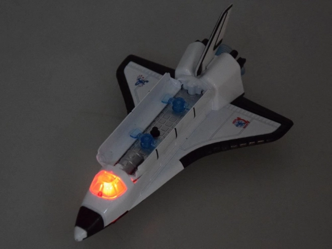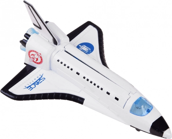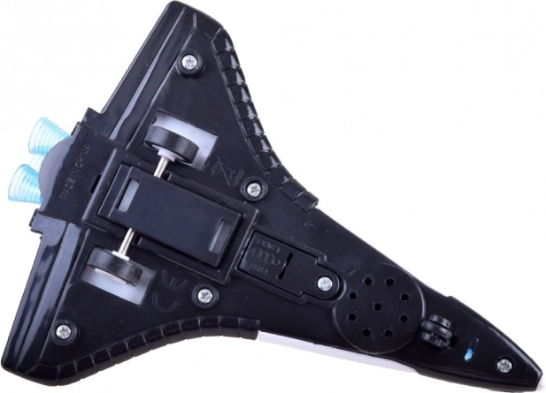 Această navă spațială este visul oricărui mic iubitor de univers. Cu o combinație de metal și plastic, oferă efecte realiste de lumină și sunet, care se activează prin intermediul unui buton amplasat sub partea de deschidere a aparatului. La apăsare, veți auzi sunetul motorului rachetei și o lumină roșie se va aprinde în cabina piloților.