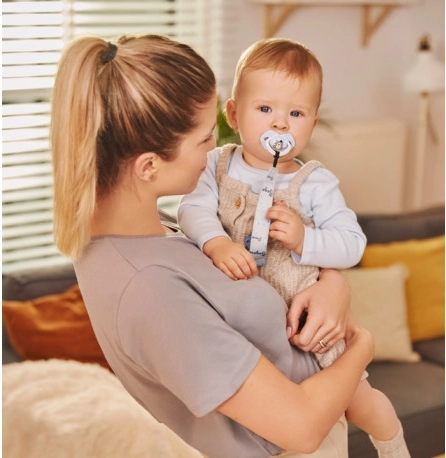 Important! Pentru siguranța și sănătatea copilului dumneavoastră! Verificați suzeta înainte de fiecare utilizare. Testați tetina prin întindere atentă în toate direcțiile. La primele semne de deteriorare, aruncați imediat suzeta și nu o mai folosiți. Folosiți numai acele clipsuri și lanțuri pentru suzetă care corespund cerințelor normei EN12586. Nu atașați niciodată suzeta de diverse șnururi, șireturi sau panglici de la haine. Copilul se poate sufoca. Nu lăsați suzeta în lumina directă a soarelui, în apropierea unei surse de căldură sau în soluții dezinfectante mai mult decât este recomandat – puteți slăbi tetina suzetei. Păstrați capacul îndepărtat în afara razei de acțiune a copilului – preveniți riscul de sufocare.