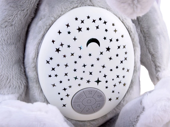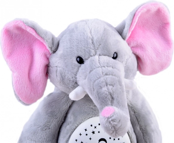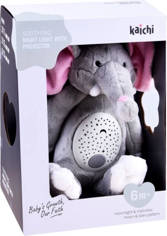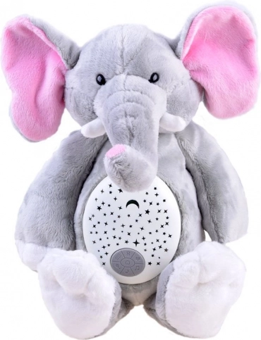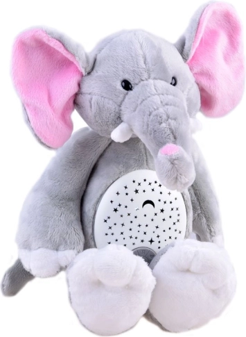 Elefantul de pluș funcționează ca lumină de noapte și oferă melodii liniștitoare, care ajută copiii să adoarmă.