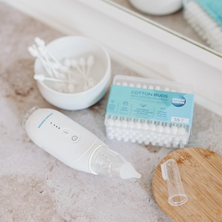 Un accesoriu perfect pentru îngrijirea copilului și, în plus, 100% natural! Forma specială, anatomică, a bețișoarelor de vată previne introducerea prea adâncă în nara sau în urechea copilului. Bețișorul este fabricat 100% din hârtie — o alternativă ecologică la bețișoarele din plastic. Capătul din vată este realizat din 100% bumbac. Forma părții din bumbac cu limitator asigură o utilizare sigură. În pachet găsiți 56 bucăți. Instrucțiuni de utilizare: Capetele bețișoarelor de vată pot fi umezite cu o soluție sterilă. Nu introduceți bețișorul adânc în nas sau în ureche. La utilizare, manifestați o atenție sporită – nu uitați că în timpul curățării copilul se poate mișca. Avertisment! Important pentru siguranța și sănătatea copilului dumneavoastră! Verificați calitatea produsului înainte de fiecare utilizare. Produsul nu este o jucărie. A nu se lăsa la îndemâna copiilor. Bețișoarele corespund cerințelor: Directiva Parlamentului European și a Consiliului 2001/95/CE privind siguranța generală a produselor.